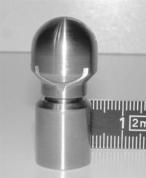 Der Nanospinner ist ein kompaktes, axial rotierendes Reinigungsgerät und wird durch das durchfließende Reinigungsmittel angetrieben. Konstruktionsbedingt ist der Nanospinner gasdicht, steril und für alle Reinigungsmittel geeignet. Die Achse des Nanospinner ist doppelt in Kugeln gelagert und in allen Einbaupositionen lauffähig. Anwendungen Verwendung findet der Nanospinner bei Behältern, Tanks, Silos etc. mit und ohne Einbauten. Einbauposition Die Einbauposition ist frei wählbar. CIP Der Nanospinner ist CIP fähig, validierbar, FDA konform und problemlos in automatisierte Reinigungen integrierbar. Selbstreinigung In der Standardeinbauposition ist der Nanospinner vollständig selbstreinigend. Sonderlösungen für 100% Sterilbetrieb auf Anfrage. Verbrauch Im Vergleich zu herkömmlichen Reinigungsverfahren werden bis zu 70% an Reinigungsmittel eingespart. Betriebskosten Die kurze Reinigungszeit sowie die beträchtliche Reinigungsmittelersparnis ergibt geringe Stillstandzeiten bei reduzierten Kosten. Beste Werte für TCO (total costs of ownership) und ROI (return of Investment) zeichnen den Nanospinner aus. Anschlüsse G 1/8" als Standard Optionen andere Gewinde ClipOn Version WeldOn Version kundenspezifische Spritzmuster polierte Ausführungen